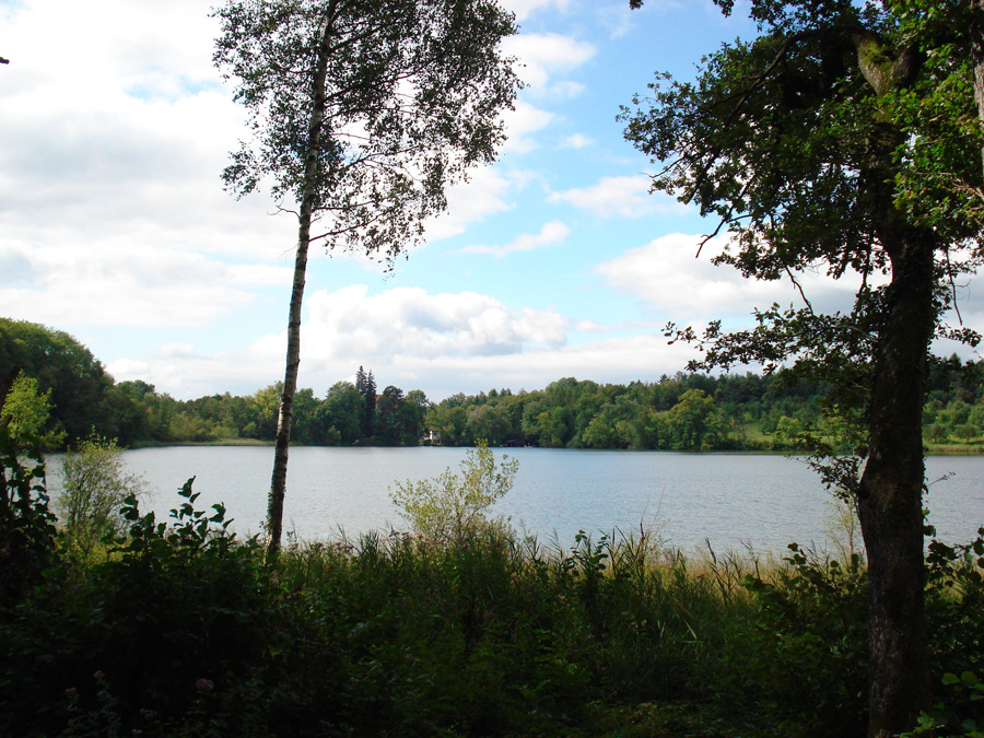 Katzensee Der Katzensee ist ein beliebter Moorsee für Wander- und Badefreunde an der Stadtgrenze von Zürich. Sascha und ich holten Ursi (meine Kollegin) in Regensdorf ab und fuhren etwas an den See. Die Sonne brannte vom Himmel, und so genossen wir es auf dem schattigen Weg dem See entlang zu flanieren. Sascha war ohne Leine unterwegs. Damals war dies noch erlaubt. Heute ist leider, wie an so vielen Orten, Leinenpflicht.